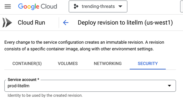 Once that's done, when you deploy the new container in the Google Cloud Run service, LiteLLM will have automatic access to all Vertex AI endpoints.